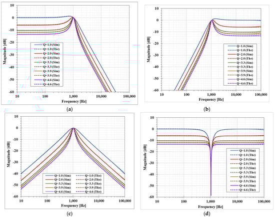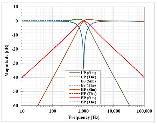 - Tsukutani, T.; Higashimura, M.; Takahashi, N.; Sumi, Y.; Fukui, Y. Versatile voltage-mode active-only biquad with lossless and lossy integrator loop. Int. J. Electron. 2001, 88, 1093–1102. [Google Scholar] [CrossRef]