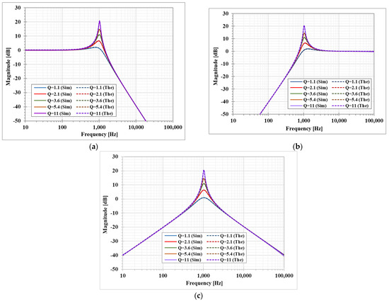 - Buakaew, S.; Narksarp, W.; Wongtaychatham, C. High Quality-Factor Shadow Bandpass Filters with Orthogonality to the Characteristic Frequency. In Proceedings of the 2020 17th International Conference on Electrical Engineering/Electronics, Computer, Telecommunications and Information Technology (ECTI-CON), Phuket, Thailand, 24–27 June 2020; pp. 372–375. [Google Scholar] [CrossRef]