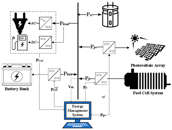 Configuration of hybrid PV/PEMFC/BSs/SCs system.