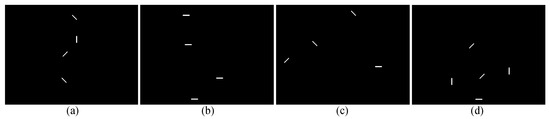 The limited field of view of the robotic fish makes it impossible to classify all fish swarm behaviors. Therefore, four patterns were defined as the corpus: Fish Schooling-Following (pattern 1), Fish Schooling-Parallel (pattern 2), Shoal (pattern 3), and Fish Schooling-Tornado (pattern 4). A Convolutional Neural Network (CNN) was used to classify fish swarm behavior. Images taken from the camera set up on top of the tank were used for this purpose. A Python program in OpenCV was created that captures fish positions and saves frames every minute. The program first generates a blank image and, then, depending on the fish’s moving direction, it places a marker on the empty image. Figure 7 illustrates the four fish swarm patterns selected for the study and the outcome image of the detection algorithm.