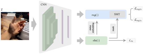The main challenge in hand pose estimation with partial annotation is integrating the partial annotation information into a regression problem. To address this issue, we separate the estimation problem into two tasks and propose a dual-branch structure. The proposed PA-Tran framework is shown in Figure 2, which consists of the CNN feature extractor, the classification branch and the regression branch . Compared with conventional ViT [39], using CNN as the feature extractor could effectively utilize the local receptive fields of CNN and global receptive fields of Transformer, especially for image-based tasks. The approach has been proven to be quite effective and can also be applied with pre-trained networks such as ResNet [40]. Besides, it can alleviate the demand for large-scale training datasets of Transformer to some extent. The classification branch is deployed to estimate the status of the keypoints, and the regression branch is used to estimate the positions of the keypoints. The two branches work dependently.