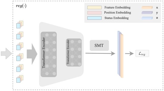 The structure of the regression branch is shown in Figure 3. The input consists of three parts: feature embedding, position embedding, and status embedding. Inspired by the excellent performance of capturing the dependencies between different variables of ViT [39], we adopt Transformer to model the interactions among the three representation embeddings. In addition, Transformer encoders are order-invariant, allowing for any type of dependencies between all features and labels to be learned [41]. The proposed input format allows us to easily input the representation embeddings into the Transformer encoder. Inspired by [29], we apply a similar structure to reduce the dimensionality of the hidden embedding after each encoder layer progressively, and the final outputs of the encoder are the coordinates of the keypoints.