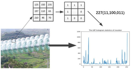 The texture and color feature of insulator string is obviously different from that of the background, so these features can be used for classification and recognition. LBP is an effective texture description operator, and its principle is shown in Figure 5.