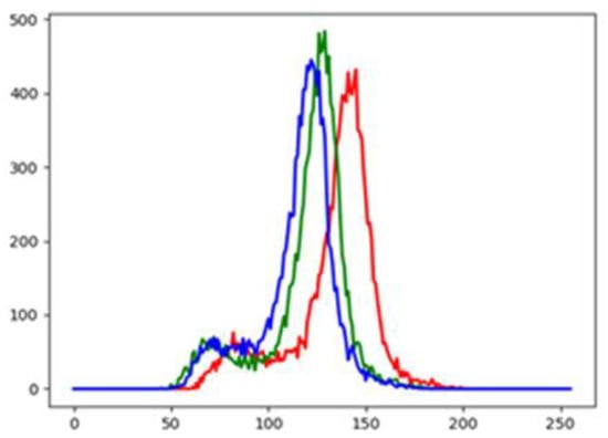 Figure 7 is the RGB histogram of the insulator. The red, blue, and green lines represent the number of pixels for each color depth in the insulator image. It can be clearly seen that most of its pixels have larger values in the red channel, so it is a red insulator. The distribution of 256 groups of color depth in R, G and B channels can be obtained by loading the RGB image of insulator with 8 bit color depth. Therefore, the amount of RGB data input to the classifier is 768.