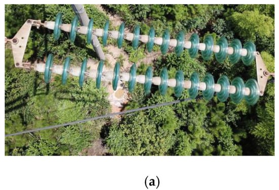 The functions of insulators, which play an important role in high-voltage transmission lines, are to support power lines and provide electrical insulation [1,2,3]. Missing insulator caps are usually found on glass and porcelain insulators, which are mainly caused by tension on insulators from power lines and towers, and erosion of insulators by wind, acid rain and other weather elements. The insulators of these materials age due to accumulated weather erosion. Under the action of power line tension, the insulator cap is damaged and falls off. In addition, glass insulators can eliminate a flashover cap, which is called “zero-value self-explosion”. Thus, the insulator cap will be missing more frequently in glass insulators. A missing insulator cap decreases the mechanical and electrical properties of the whole insulator string, which will threaten power transmission system operations. Therefore, the detection of missing insulator caps is one of the most important topics in transmission line detection.