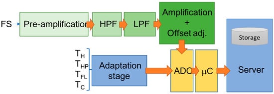 Figure 6. Outline of the electronic system responsible for aHB sensor adaptation and data signal acquisition.