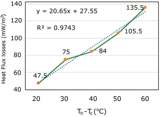 Figure 8. Lateral heat-flux losses as function of thermal gradient generated on a calibrated sample.