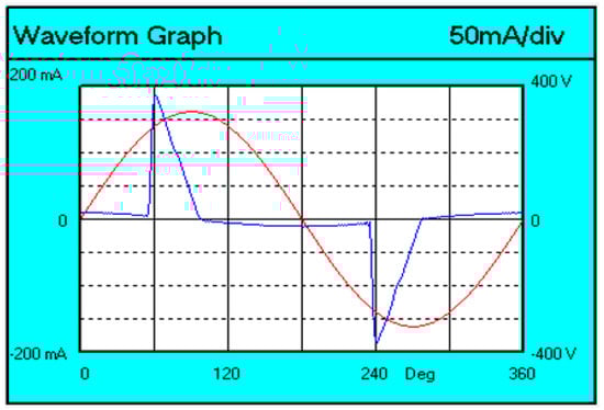 You can see that the current waveform (blue line) is not sinusoidal.