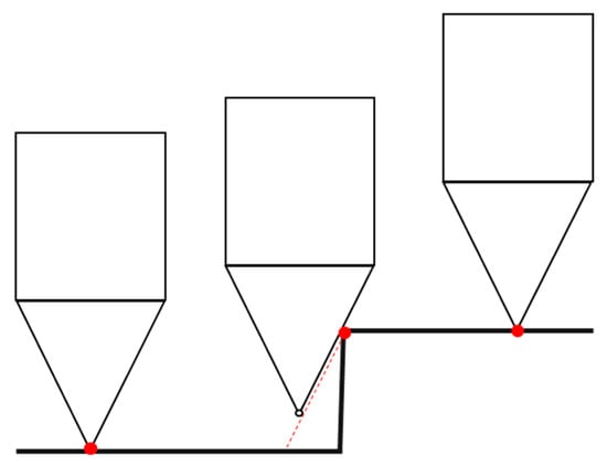 To provide an explanation of the problems encountered at the higher Ra values, a simple geometrical model was developed, simulating a stylus measuring roughness through a surface having a step profile. The model confirms that large amplitude of the step determines the stylus to underestimate its Ra. This observation shows a potential advantage of the backlit vision system: being non-contact, the measurement does not suffer any limitation due to the shape of the probe, while the stylus does.