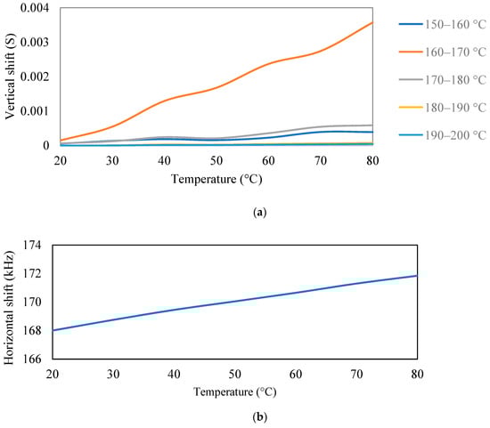 (a) Vertical shift; (b) horizontal shift as a function of temperature.