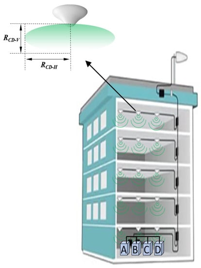 - Atawia, R.; Ashour, M.; El Shabrawy, T.; Hammad, H. Optimized transmitted antenna power indoor planning using distributed antenna systems. In Proceedings of the 2013 9th International Wireless Communications and Mobile Computing Conference (IWCMC), Sardinia, Italy, 1–5 July 2013; pp. 993–1000. [Google Scholar] [CrossRef]