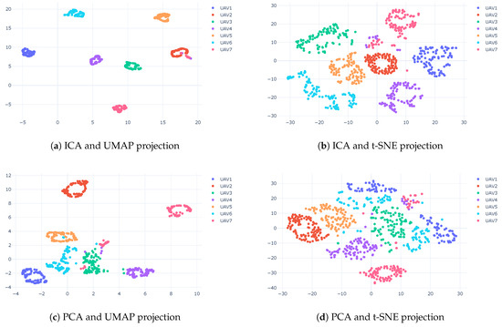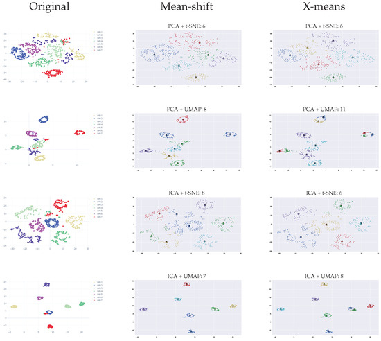 - McInnes, L.; Healy, J.; Melville, J. Umap: Uniform manifold approximation and projection for dimension reduction. arXiv Prepr. 2018, arXiv:1802.03426. [Google Scholar]
