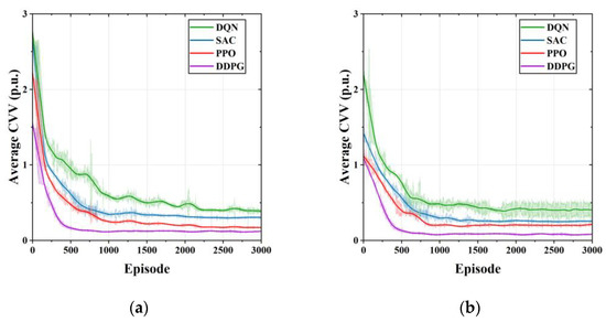 VVC is used to improve the voltage stability of the distribution network. In traditional VVC practice, voltage-regulating devices, such as on-load tap changers (OLTCs), voltage regulators (VRs), and switchable capacitor banks (SCBs), are leveraged to mitigate voltage violations [14]. In [15], a support vector regression based model predictive control (MPC) method was proposed to optimize the voltage of a distribution network. For the renewable energy access problem controlled by inverters, a multistage method has been widely used for the VVC of distribution networks [16,17]. To coordinate VVC equipment and distributed power supply, neural networks and learning-based methods are widely used. An artificial neural network (ANN) based approach was introduced for the VVC of distributed energy resources at the grid edge [18]. The authors of [19] proposed a safe off-policy deep reinforcement learning algorithm for VVC in a power distribution system. A model-free approach based on constrained safe deep reinforcement learning was proposed in [12] to solve the problem of optimal operation of distribution networks. Although the aforementioned research has made some achievements in VVC, they did not consider the effect of electric vehicle charging on voltage stability nor did they consider the possibility of electric vehicles participating in voltage control.