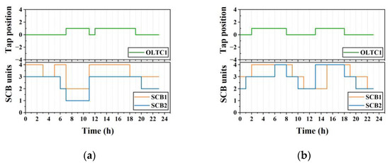 The SCB adjusts the amount of reactive power it provides by regulating the number of operating units. The number of operating units of the SCB at node is expressed as , which is taken in an integer range: