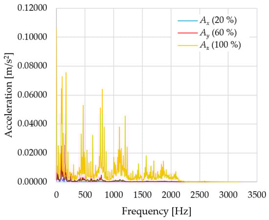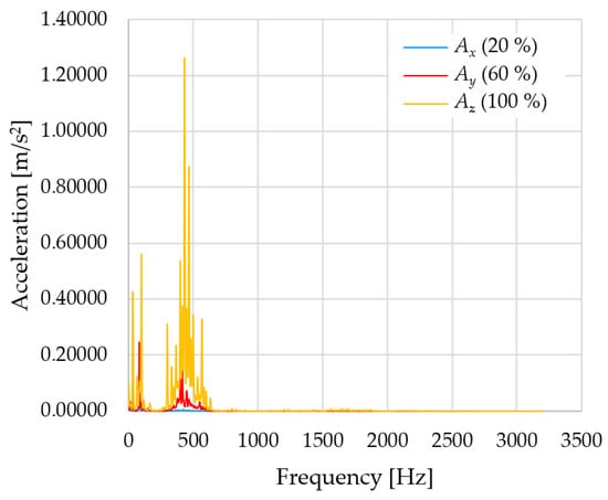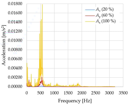 Table 6, Table 7 and Table 8 show the evaluated frequency values and the corresponding accelerations for each velocity (20, 60 and 100%) in the X-, Y- and Z-axes.