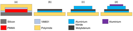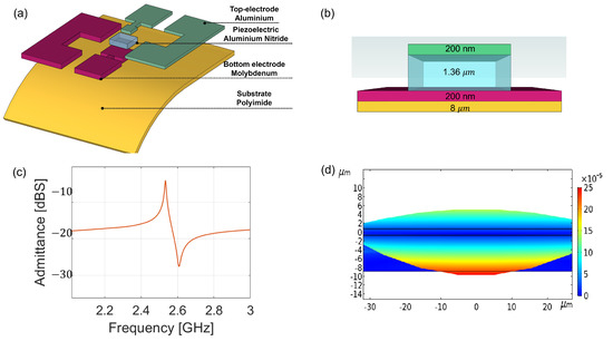 - Niro, G.; Marasco, I.; Lamanna, L.; Rizzi, F.; D’Orazio, A.; de Vittorio, M.; Grande, M. Fabrication of a Flexible Film Bulk Acoustic Resonator for Wireless Sensor Networks. In Proceedings of the 2022 Microwave Mediterranean Symposium (MMS), Pizzo Calabro, Italy, 9–13 May 2022; pp. 1–4. [Google Scholar] [CrossRef]