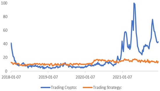 Google trends phrase search results for crypto trading and trading strategy in the period under the study.