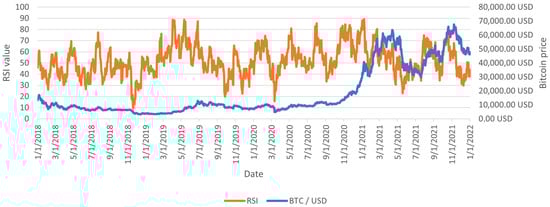 The date range examined in the experiments starts on 1 January 2018 and ends on 1 January 2022, at a daily interval. The RSI values were also calculated for the 14 days before 1 January 2018. The returns were calculated until the end of March 2022. This approach allowed for the examination and evaluation of the full period between 1 January 2018 and 1 January 2022.