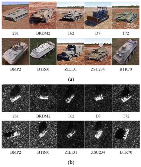 Images of each category in the MSTAR dataset. (a) Optical images. (b) SAR images.
