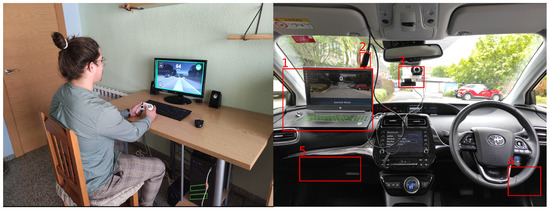 Figure 3 shows all the hardware elements mounted and being used in our Toyota Prius on the right side, along with the remote station used to drive the car remotely, on the left side.
