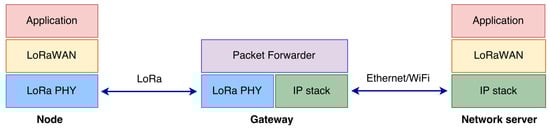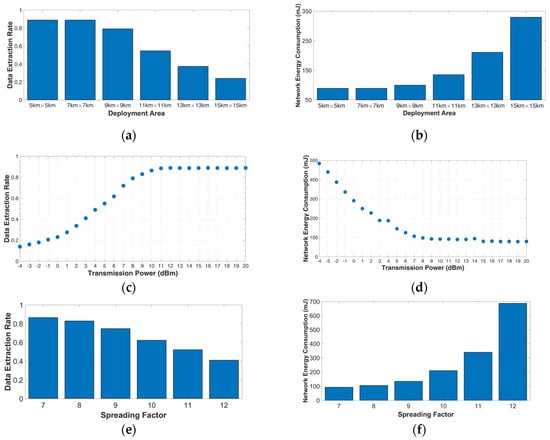 - Spreading factor (SF). SF can be in the range of 7–12. A higher SF improves the communication range but increases the energy consumption.