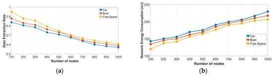 - Data extraction rate (DER) is defined as the amount of messages which were received correctly divided by the number of messages that were sent to the server. DER is computed between 0 and 1. When the ratio is closer to 1, it means that the LoRa network is working more efficiently.