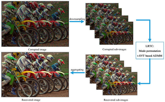 Therefore, the overall framework process of color image restoration based on sub-image low-rank tensor completion proposed is shown in Figure 5.