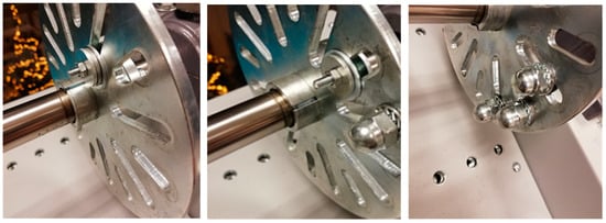 The paper investigates development of the imbalance condition of the output shaft. The imbalance condition is introduced using a series of weights attached to one of the plates on the output shaft. Two types of weights are used, namely a smaller screw with a different number of washers, and from 1 to 6 larger screws. Figure 8 illustrates the selected initial stage, and two intermediate stages of the introduced imbalance state.