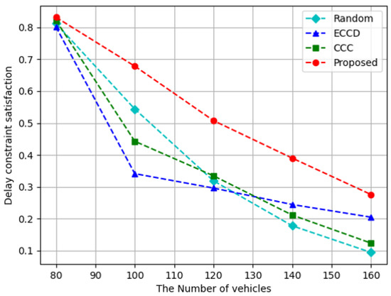 Delay constraint satisfaction with respect to the increase in the number of vehicles.