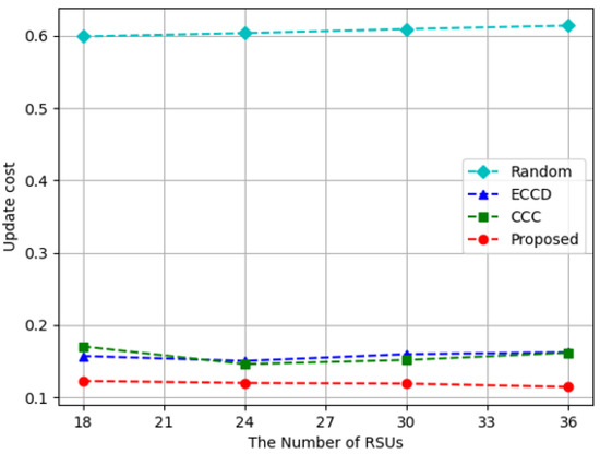 The vehicles and RSUs figured out their own updated contents and they were used to average the update cost for all caching nodes. The update cost in the proposed algorithm is different from that of CCC which only computes the number of changed contents.