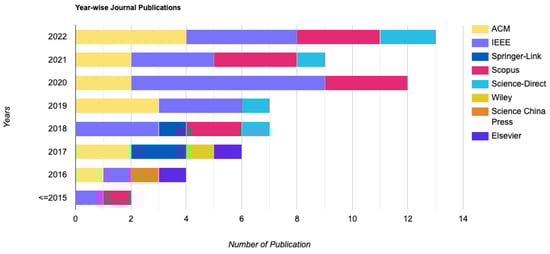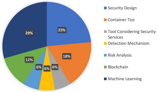 - Container tool: Operating system virtualization is a kind of containerization. Anything from a small microservice or software process to an enormous application might be operated inside a single container. Unnecessary component inclusion needlessly increases the image size, which is potentially vulnerable to security attacks. Rastogi et al. [15] introduced a novel tool called Cimplifier, which can take a container and simple user-defined constraints, partition it into more straightforward containers isolated from each other, and communicate when needed; it has the least resource capability, meaning it utilizes only the resources it needs. By modifying and differentiating the necessary system calls at two different execution phases, namely the booting phase and running phase, Lei et al. [44] presented a container security mechanism called SPEAKER that can significantly reduce the number of system calls available to a given application container. To find the vulnerabilities and create a list of use cases that adheres to the NIST requirements, Ahamed et al. [59] provided a vulnerability-centric method in Docker images. Additionally, they validated the specified use-cases checklist against the OWASP Container Security Verification Standards [61], which businesses may utilize to sharpen the focus of security needs on their projects. There were 17.6% of the studies focused on the container tools.