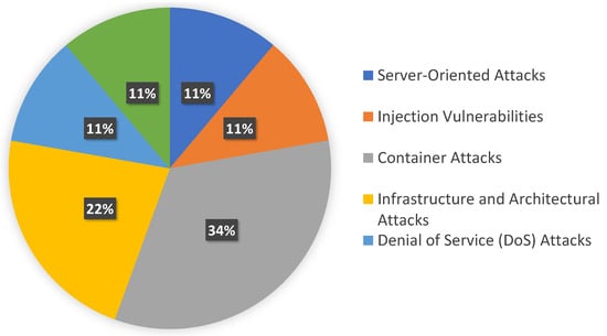 - Machine Learning: From our analysis, we found that researchers have capitalized on several machine-learning-based approaches. For example, artificial intelligence can strengthen the detection process of attacks and their corresponding classification. Fredj et al. [62] performed similar work by providing several neural network approaches: long short-term memory (LSTM), a recurrent neural network (RNN), and multilayer-perceptron (MLP)-based models to predict the attacks and their behavior. Bhargava et al. [48] presented a model for ensuring mission-critical cloud systems’ security and performance requirements, where service monitoring and mining were performed using unsupervised machine learning. The usage of machine learning mainly focuses on the identification of abnormal behavior to determine a system’s resilience to attacks and failures. Iraqi et al. [50] presented a framework that utilizes autonomic computing and a microagent/microservice architecture approach, and it expands their application-level unsupervised outlier-based intrusion detection and prevention framework. Parallelism, asynchronous data streaming, and distributed cluster computing are also utilized. Almiani et al. [45] introduced the concept of the neural network in cloud-native computing, developing an intelligent network intrusion detection model against the most-contemporary DDoS attacks. Their model successfully identified highly reflective DDoS attacks and can be used to defend against them. Baarzi et al. [51] proposed an unsupervised, non-intrusive, and application-neutral approach to identify application-layer attacks. Additionally, they provided a service fissioning mechanism to isolate the attacker and effectively lessen the impact of the assault on genuine users. For detecting anomalies, Zhang et al. [37] presented an unsupervised method, one-class support vector machine (OC-SVM). Their experimental findings showed that the OC-SVM algorithm could identify contemporary assaults successfully with a good FPR, ranging from 0.02 for brute force attack to 0.12 for adversarial ML attacks. We note that the category was the subject of 29.4% of the studies we collected.