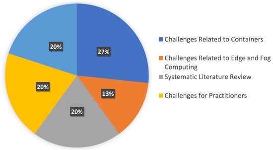 - Challenges related to edge and fog computing: Both concepts extend cloud computing and provide better security in the cloud environment. Caprolu et al.’s [24] analysis of virtualization technologies’ effects on the edge/fog network architecture included their benefits and the security concerns they raised. They also updated the prevalent security challenges in such designs and offered some options for future research that might impact general security. Yu et al. [57] assessed the various security concerns that microservice-based fog applications encounter. They focused on the containers, data, permissions, and network components of microservices’ communication of services. Finally, they offered a solution to address network attacks and software-defined network (SDN) security vulnerabilities to close the existing security gaps. Notably, 13.3% of the papers were devoted to this topic.