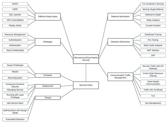 - Systematic literature review: Existing mapping studies are good resources when analyzing core concepts, as they provide several in-depth challenges, benchmarks, and guidelines. We obtained several systematic mapping studies from our findings concerning security mechanisms, security threat detection, and mitigations. These studies provide some thorough analysis, reducing the research gaps in this field. Pereira-Vale [11] conducted a mapping study of 26 articles to identify the security mechanism used in microservice-based systems. Their findings can be an excellent resource to add to the existing architectural knowledge to address security problems in microservices-based systems. From the perspectives of the threat model and mitigation, Berardi et al. [46] described security as being at an early stage and addressed critical security attacks involving microservice architectures. They covered the connection between the primary microservices’ development methodologies and security and modern infrastructure security solutions. Finally, Hannousse et al. [10] categorized the security threats and mechanisms. In contrast to prevention and mitigation, auditing and imposing access control are the strategies that have received the most-significant research attention, according to their study. It is noteworthy that the subject made up 20% of the research reviewed.