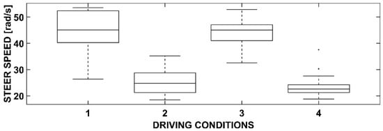 Figure 9 and Table 5 present the dependent variable and steer speed. The four driving conditions, as previously mentioned, are consistent throughout the analysis.