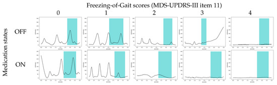 More importantly, most prior studies rely on hand-crafted features for identifying FOG, which may neglect important latent features within the data. For example, relative power in a “freeze band” of accelerometry or other signals [16,17,18], peak detection or similar methods applied to body segment motion [19,20], cycle-to-cycle variation in gait parameters [21], or a combination of the above were used in a support vector machine or other shallow machine learning models [22]. Due to the variability and complexity of FOG behavior, it is unlikely that manually designed spectral features will capture all the characteristics of FOG phenotypes. The popular “freeze band” analysis cannot capture pure akinetic freezing, which does not present with tremulousness.