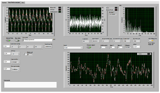 The control application includes a graphical interface allowing the complete tracing of the experiment. It includes signal visualization, signal spectrum analysis, span response, and data saving. Figure 4 shows the interface.