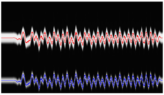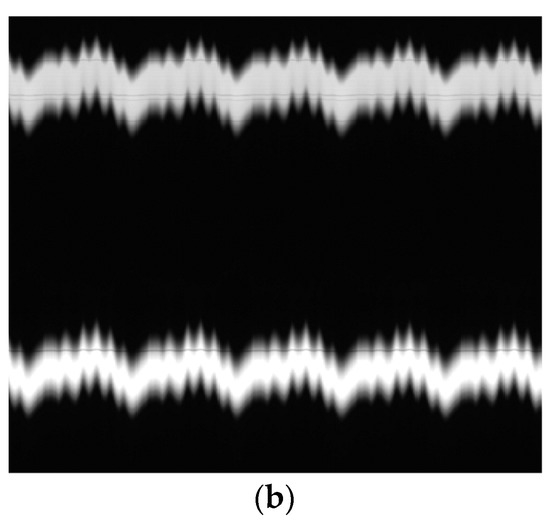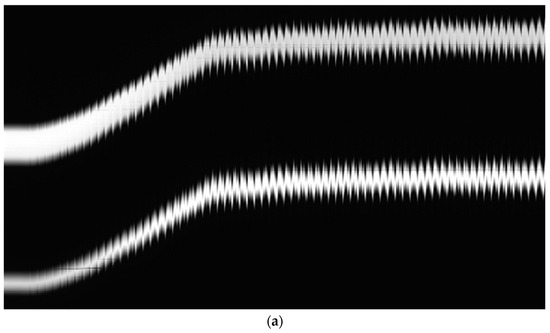 With this setup, each experiment consists of a set of linear frames representing the position of the pantograph and the wire in a grayscale linear image at each HIL simulation step. Linear image frames are arranged in columns to build a 2D image that represents the experiment’s performance, as shown in Figure 6.