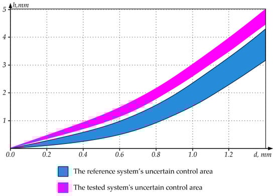 Figure 11 shows that the tested NDT system has a narrower uncertain control area and can record smaller flaws at greater depths compared to the reference NDT system.
