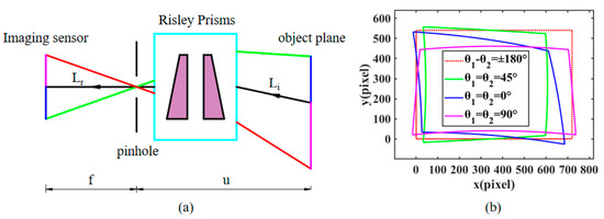 RPIS imaging system: (a) is the RPIS imaging system and (b) is the structure 21-12 Risley prisms planar model.