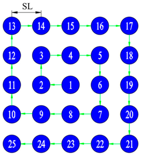 Then, in Figure 4, the sub-pixel scanning imaging is performed by the clockwise spiral scanning method with the scanning paths from point 1 to point 25 in sequence. Once the imaging view axis is scanned according to the desired path, the sequential image acquisition of the sub-pixel displacement is completed.