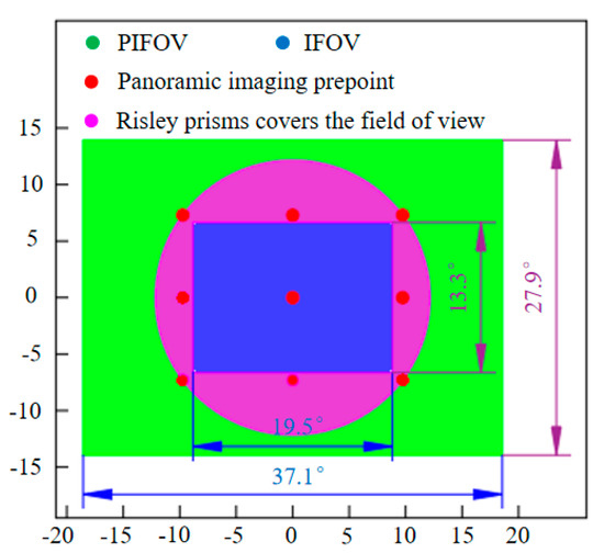 FOV, imaging field of view (IFOV), imaging pre−point position, and Risley prisms coverage FOV.