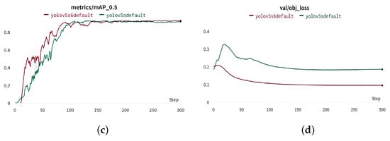 We observe from Figure 15 that YOLOv5-s6 produces better results than YOLOv5-s. It has faster convergence and lower objectness loss, which means that YOLOv5-s6 has a bigger probability that an object exists in a proposed region of interest than YOLOv5-s, and that is because of the extra detection layer that contains extra three anchor boxes. In addition to that, YOLOv5-s6 outperforms YOLOv5-s in terms of mAP, recall, and precision with a mAP that is 1.5 percent higher, which shows that YOLOv5-s6 is more balanced than YOLOv5-s in term of precision and recall.