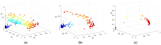 Solving the MO problem means finding solutions that are closed to the Pareto front and are uniformly distributed. Figure 3a–c show the Pareto front formation and evolution for one of our Multi Objective Genetic Algorithms (MOGA) runs.