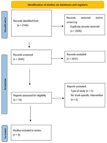 The clinical impact of falls is considerable, which often leads to an incapacitating fear of suffering new falls that causes patients to consciously limit their own mobility [,]. Therefore, the objectives of this review proposed that if therapy that targets trunk segments could increase the functional capacity and both the static and dynamic balance of patients, it will increase their confidence [,] and decrease their fear of falling []. Indeed, as the scientific literature has stated, by providing these individuals with effective anticipatory strategies, falls are avoided [,].