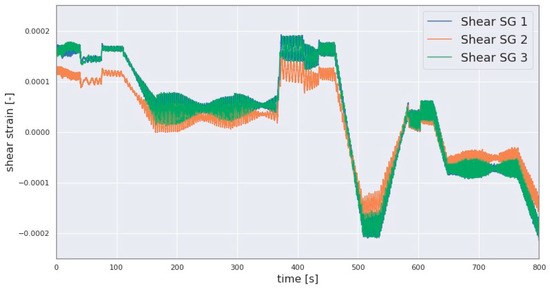 As is demonstrated with the variations in the amplitudes of the SG signals shown in Figure 5, such lower ranges of amplitude can also result in a variation in the scale of some calculated forces. In such cases, the scale of the calculated loads may be underestimated. However, as shown in Figure 5, the profile of the signal may be correct. Comparisons with the aforementioned sources of validation, such as the DS-based estimated forces, can indicate whether this is the case. They can also be used to correct the scale of the calculated loads by scaling the telemetry-based sensor signals to that of the DS-based sensor signals such as . This scaling operation could also be extended to other similarly affected load estimates by the amplitude deviation.