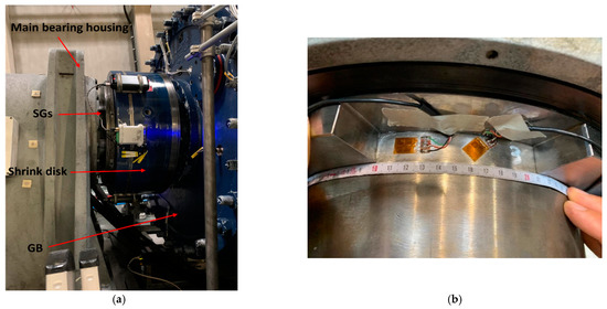 Though today’s CMSs can be used to gain insight into the drivetrain’s condition, they cannot measure GB input loads. According to [11], several studies have been conducted to measure the torque on the LSS [12,13,14,15,16,17]. In [18], torque measurements were categorized into strain gauges, magnetostrictive, surface acoustic wave, piezoelectric, and optical and inductive twist measurements. Moreover, the aforementioned torque measurement systems can be divided into two different methods: direct and indirect [15]. Direct methods use torque transducers that are intrusive and costly, while indirect methods are non-intrusive and more cost-efficient and, therefore, could be an alternative solution, according to [15]. Indirect methods typically utilize surface strain or a twist angle [19]. In [20], an indirect virtual load sensor algorithm for estimating the torque on the low-speed planetary stage was developed. Another indirect load and RUL estimation approach was presented in [21], employing readily available supervisory control and data acquisition (SCADA) data and vibration data of a CMS. Capelle et al. proposed an indirect torque measurement method using an Augmented Extended Kalman filter, a physics-based model and encoder and strain measurements on the LSS and HSS and the GB housing, respectively [22]. In [23], a torque measurement methodology was proposed using both magnetostrictive effect and twist angle measurement. The disadvantages of an indirect torque measurement method include complexities in the SG and electronics installation on the rotating LSS [15]. Furthermore, superimposed forces can decrease the accuracy of the strain, and thus of the load measurement [24]. There is currently no available load measurement solution capable of sensing WT GB input loads in 6-DOF [1,25,26]. Major obstacles to be overcome are installation complexities due to rotating parts as mentioned earlier and to power the sensor setup [27]. Moreover, according to [27], the LSS deformation is small because of its high stiffness, typically leading to a low signal-to-noise ratio.