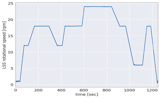Rotational speed in rpm of the LSS in multiple-load test scenario.