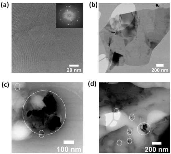 High-resolution transmission electron microscopy (HRTEM) images of the GNSs transferred onto TEM grids before (a,b) and after functionalization with Co-Por (c) and Fe-Phc (d). FFT image (in the Figure 4a inset).