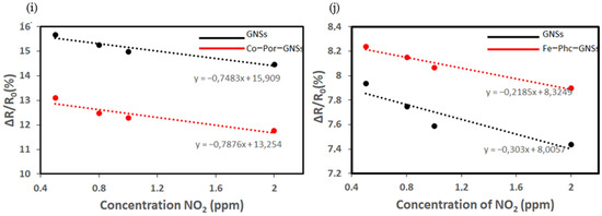 (a–j)The response of pristine GNS sensor and functionalized GNS sensors to NO2 gas under various concentrations ranging from 0.5 ppm to 2 ppm.